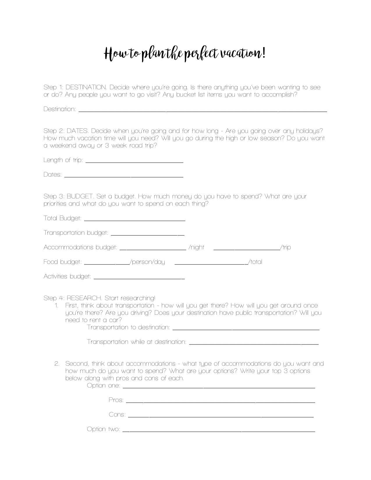 An 11-page worksheet that will walk you through the step-by-step process to planning your perfect vacation!